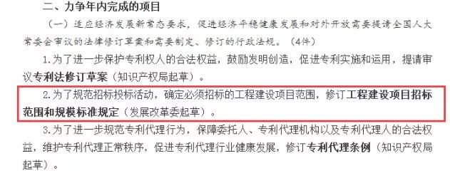 國務院辦公廳在2017年立法工作計劃中明確,將由發展改革委負責進行修訂《工程建設項目招標范圍和規模標準》。修訂的主要內容是,確定必須招標的工程建設項目范圍。